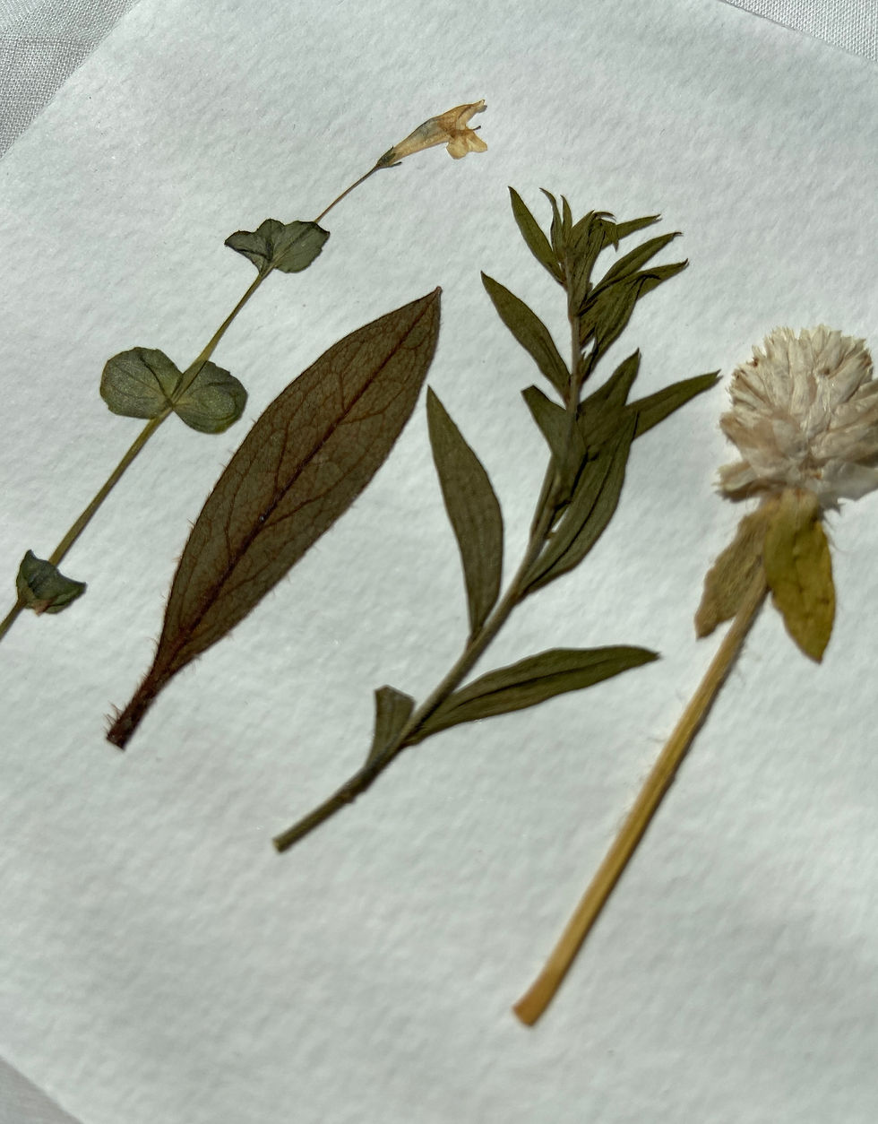 • Plantas naturais prensadas e coladas em papel texturizado 300g, PH neutro, livre de ácidos.