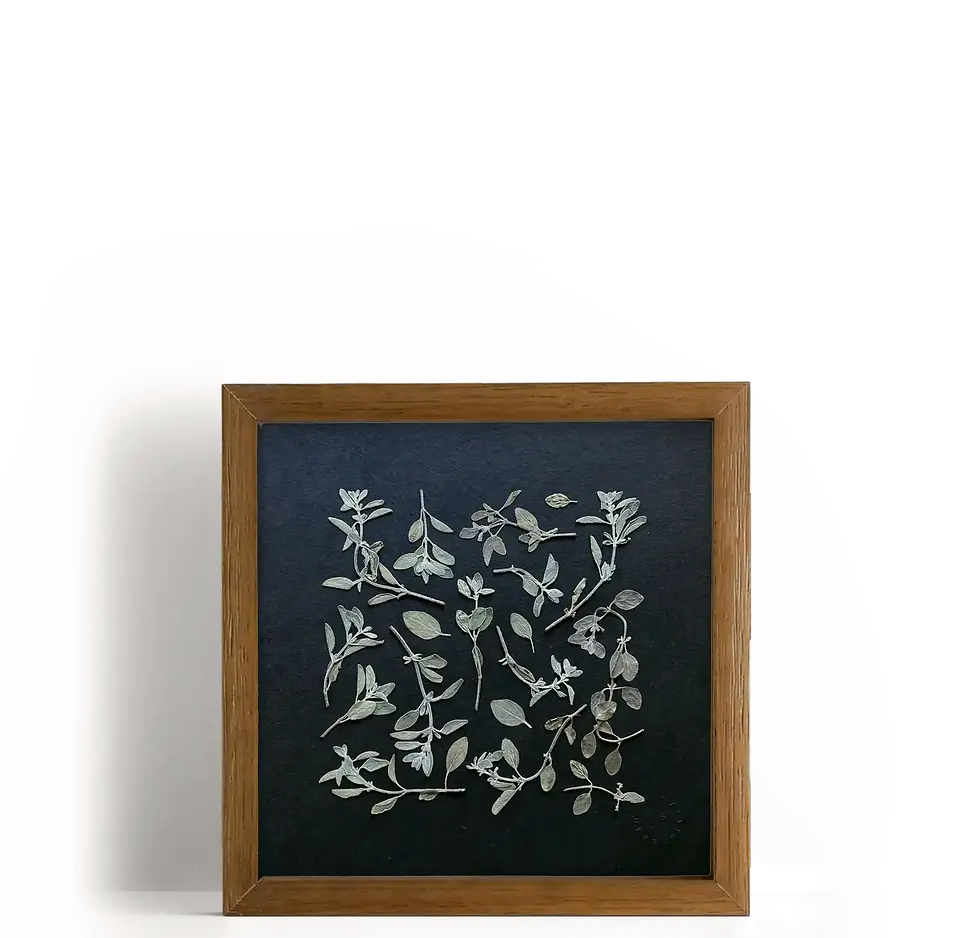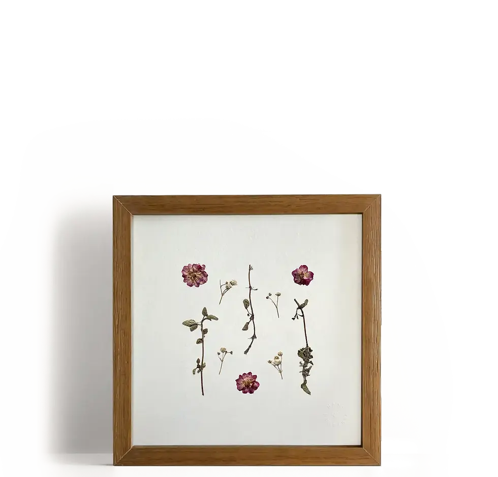 Observe que, por se tratarem de plantas naturais prensadas, as cores podem evoluir de forma natural com o tempo.